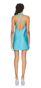 Description : SIZE: S (2-4) Self: 87% rayon, 13% polyesterLining: 95% polyester, 5% elastane. Double lined. Back button closure. Halterneck styling with bow applique. Back cut-out design. Lightweight jacquard fabric.