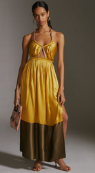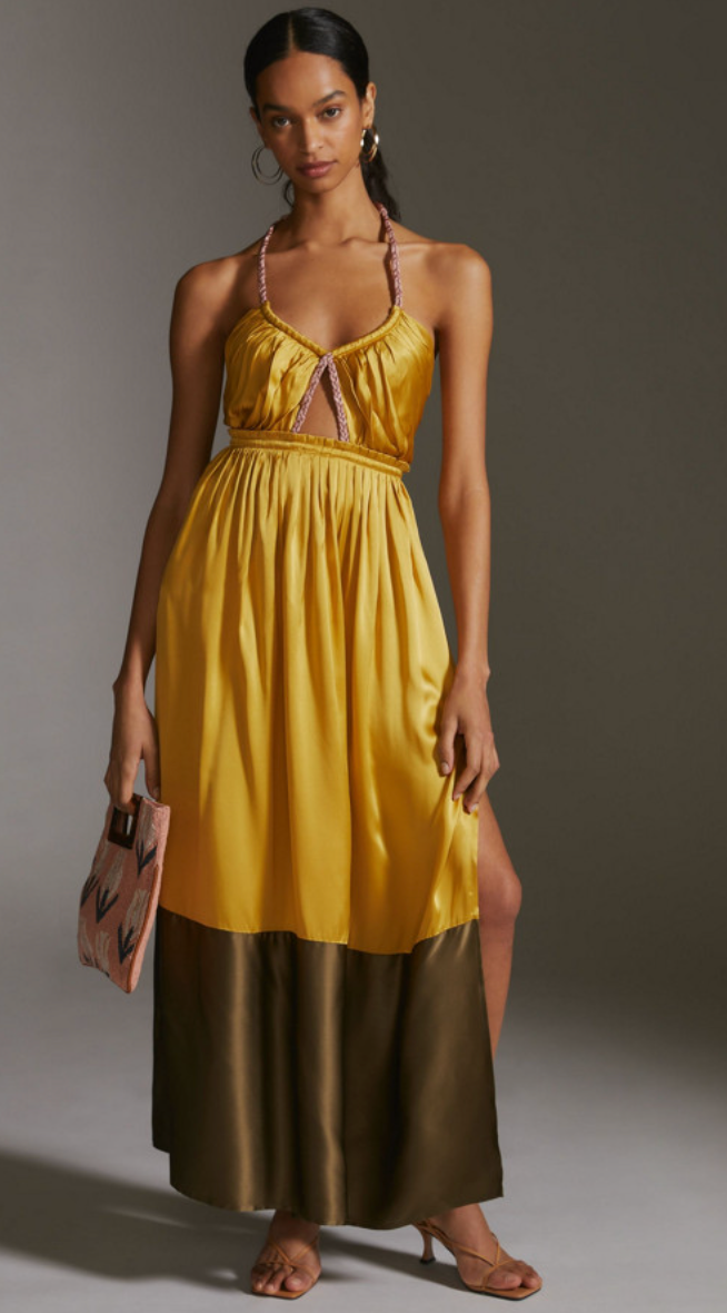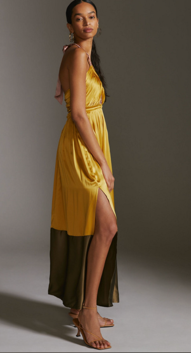 anthropologie Silk Colorblocked Maxi Dress size 2