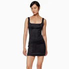 Aritzia black square neck satin dress, size 6
