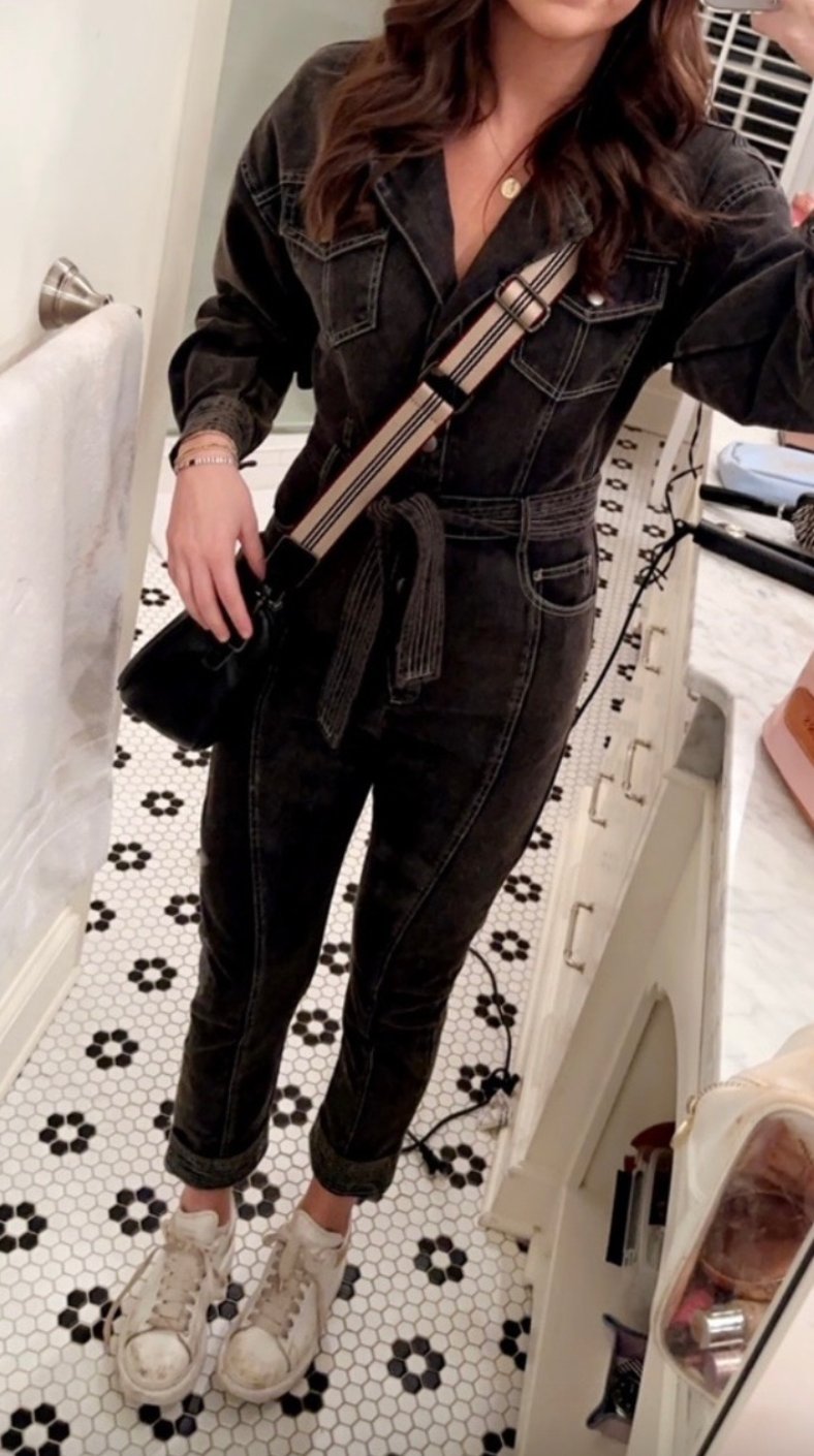 Elliatt Long Sleeve Black Denim Jumpsuit