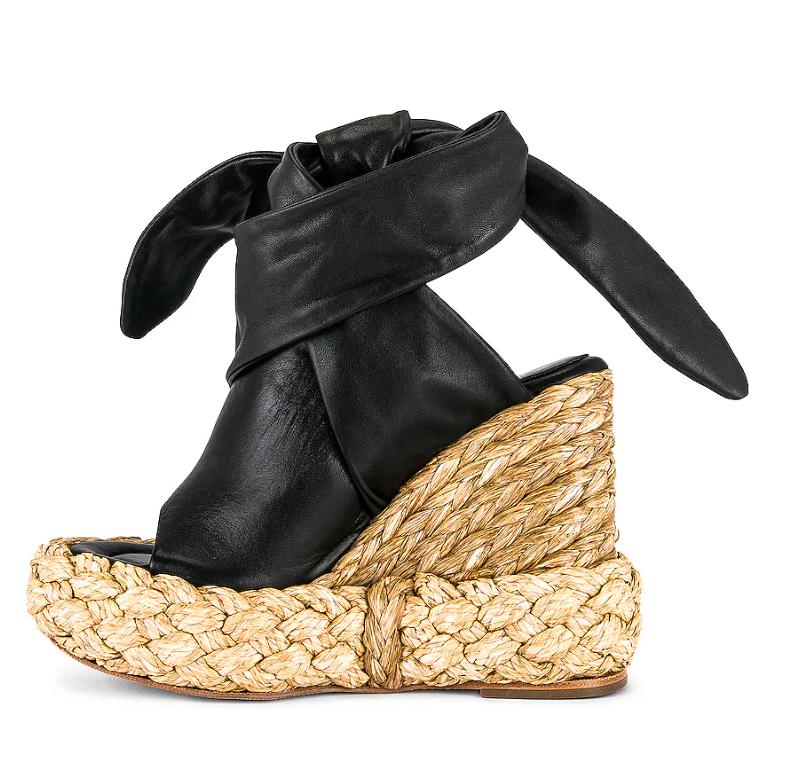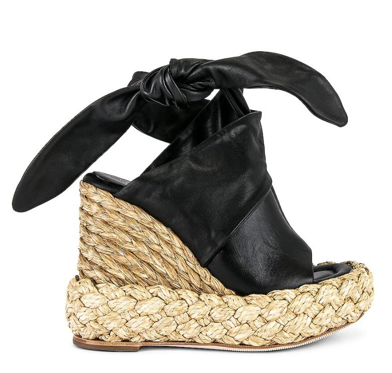 Description : SIZE: 40 Leather upper and leather sole. Made in Spain. Ankle wrap tie closure. Straw wrapped midsole. Contoured footbed. Approx 125mm/ 5 inch wedge.Approx 32mm/ 1.25 inch platform. This item is not available to