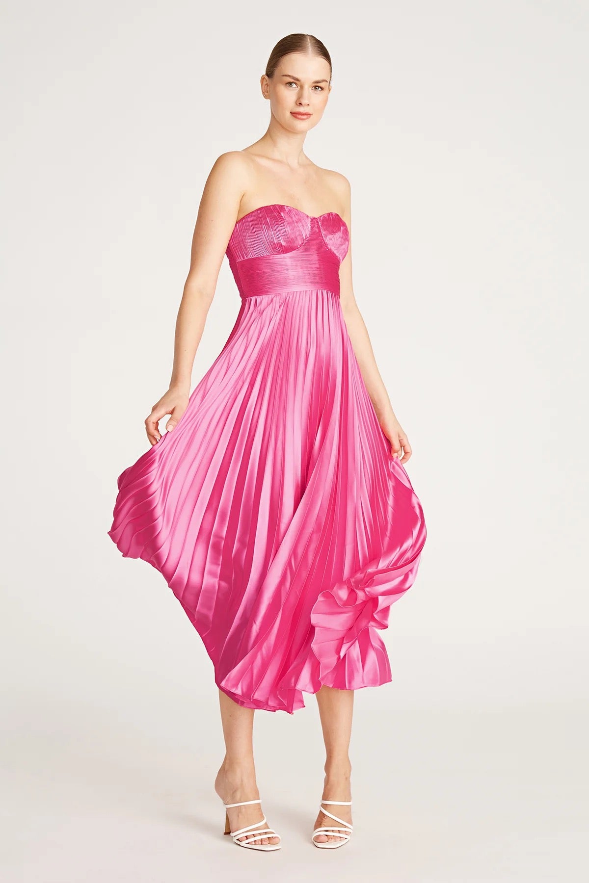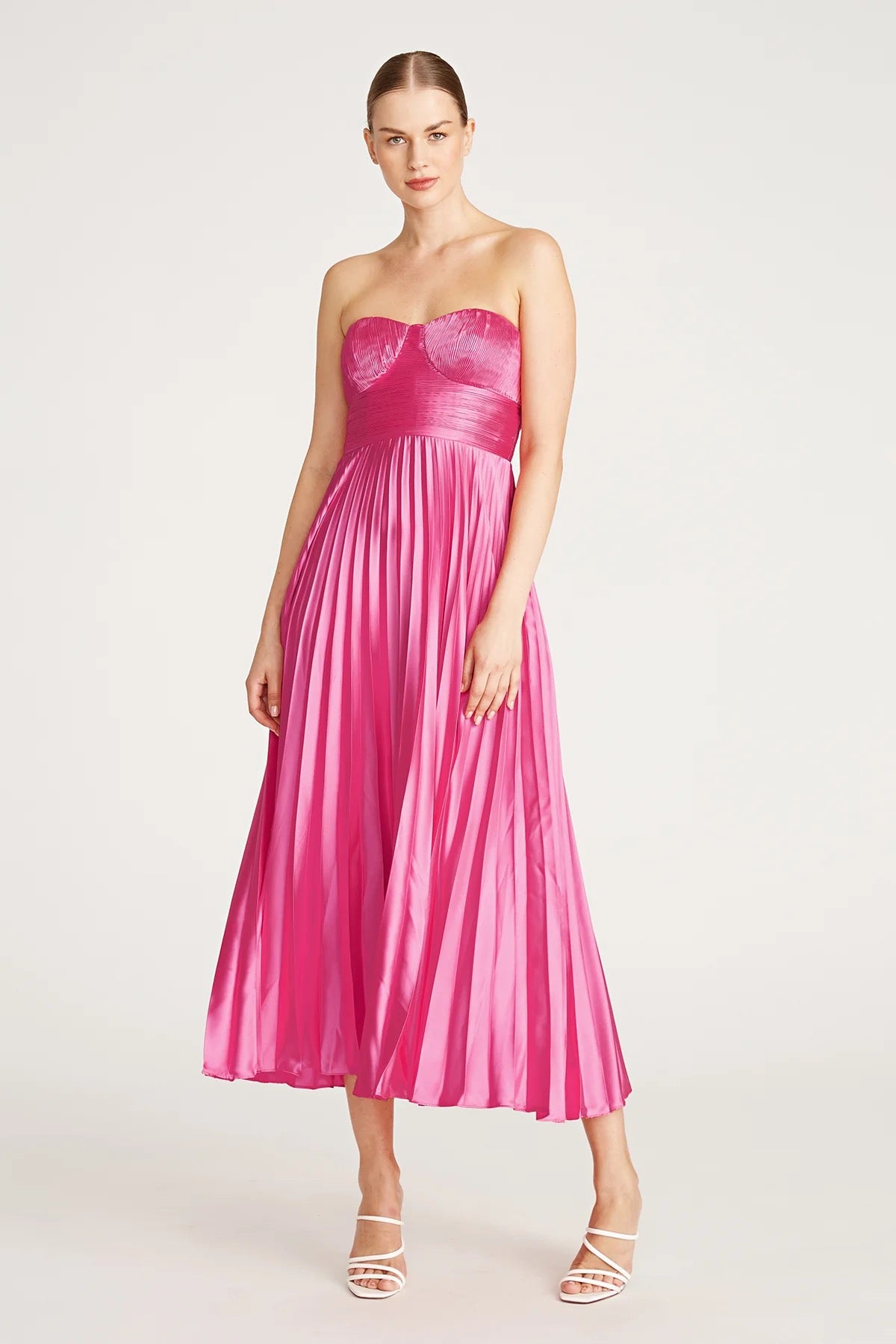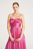 Pink Amur Strapless Pleated Midi Dress