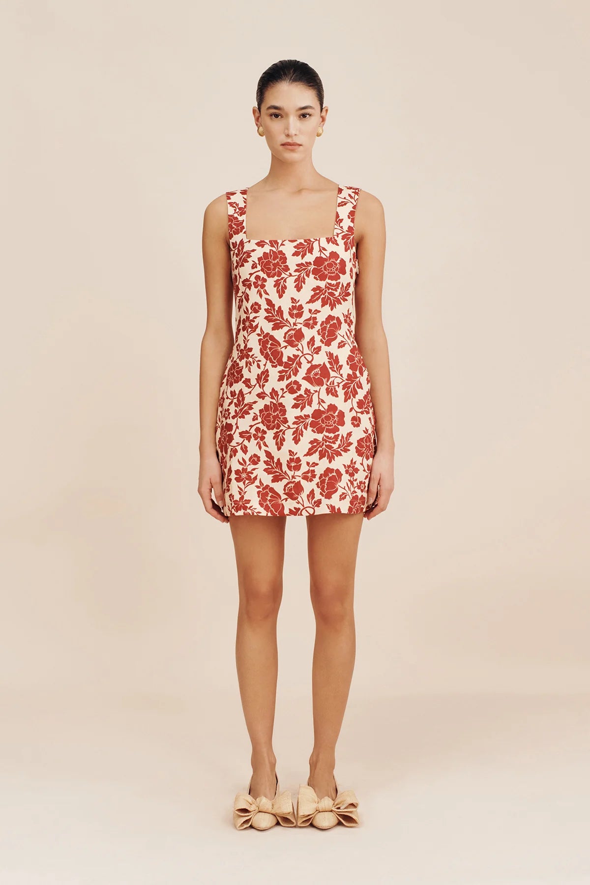 Posse Alice Mini Dress - Scarlet Bloom Patterned with our romantic vintage inspired print and cut from 100% linen, the Alice Mini Dress features a flattering square neckline and has an a-line silhouette. A wardrobe staple that will take you seamlessly from day to night. Size: XS