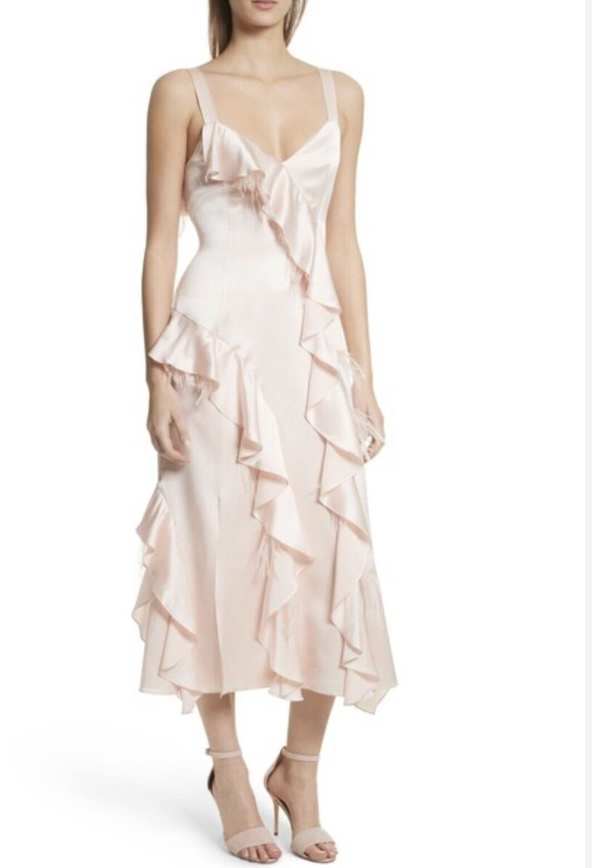 Cinq A Sept Gigi Ruffle & Ostrich Feather Trim Silk Dress