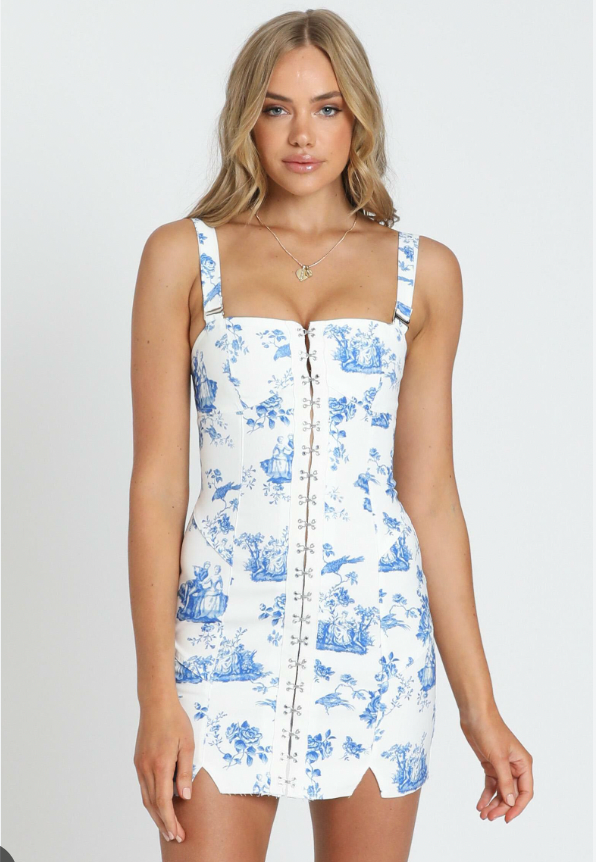 ShowPo Blue Toile Clasp Dress