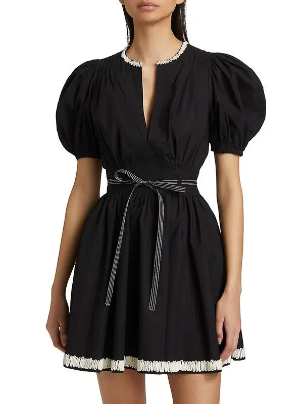 Black Ulla Johnson Embroidered Mini Dress