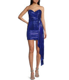 City Vibe Blue Strapless Pleated Mini Dress