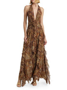 Ramy Brook Emerance Snake Ruffled Halterneck Gown