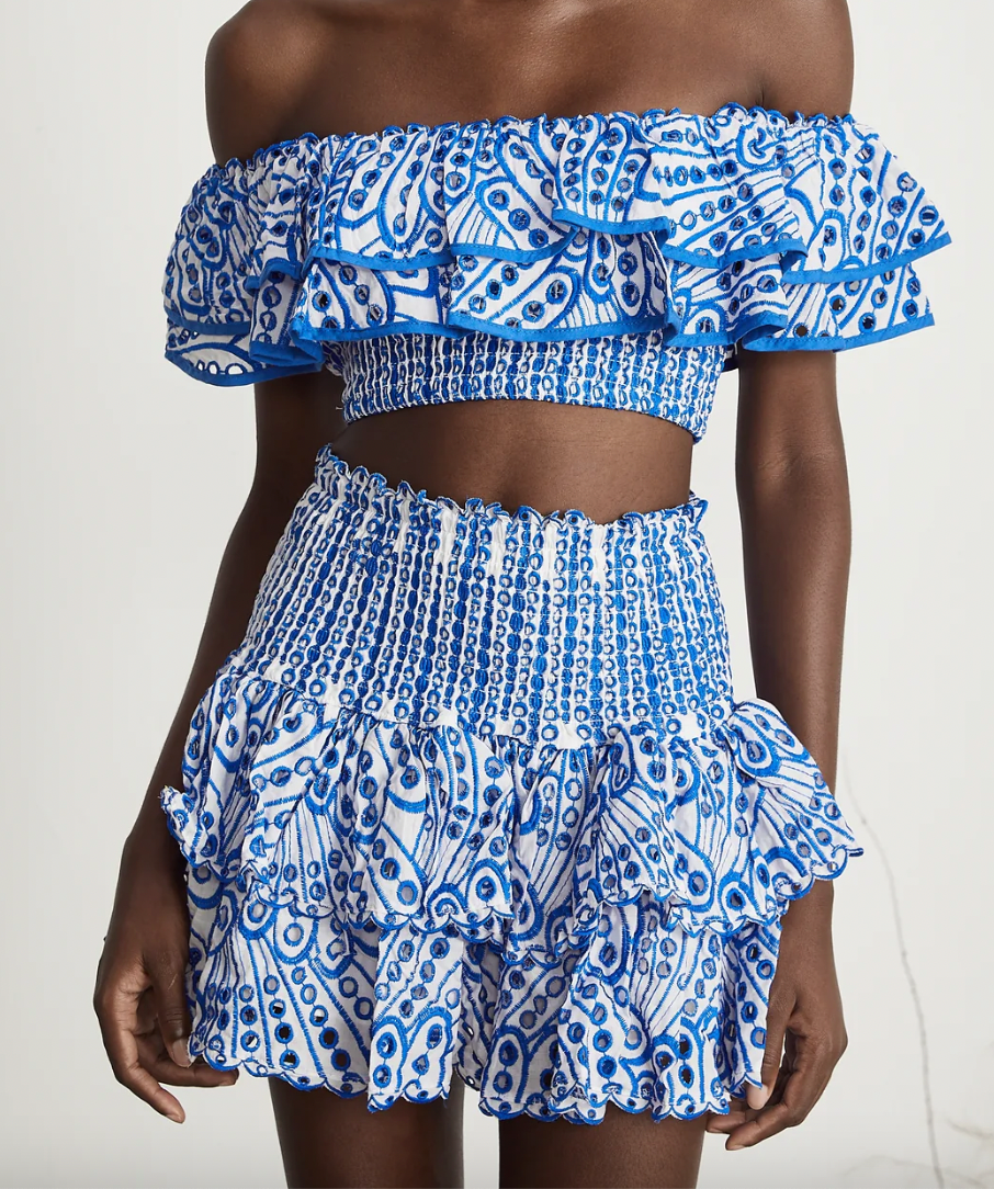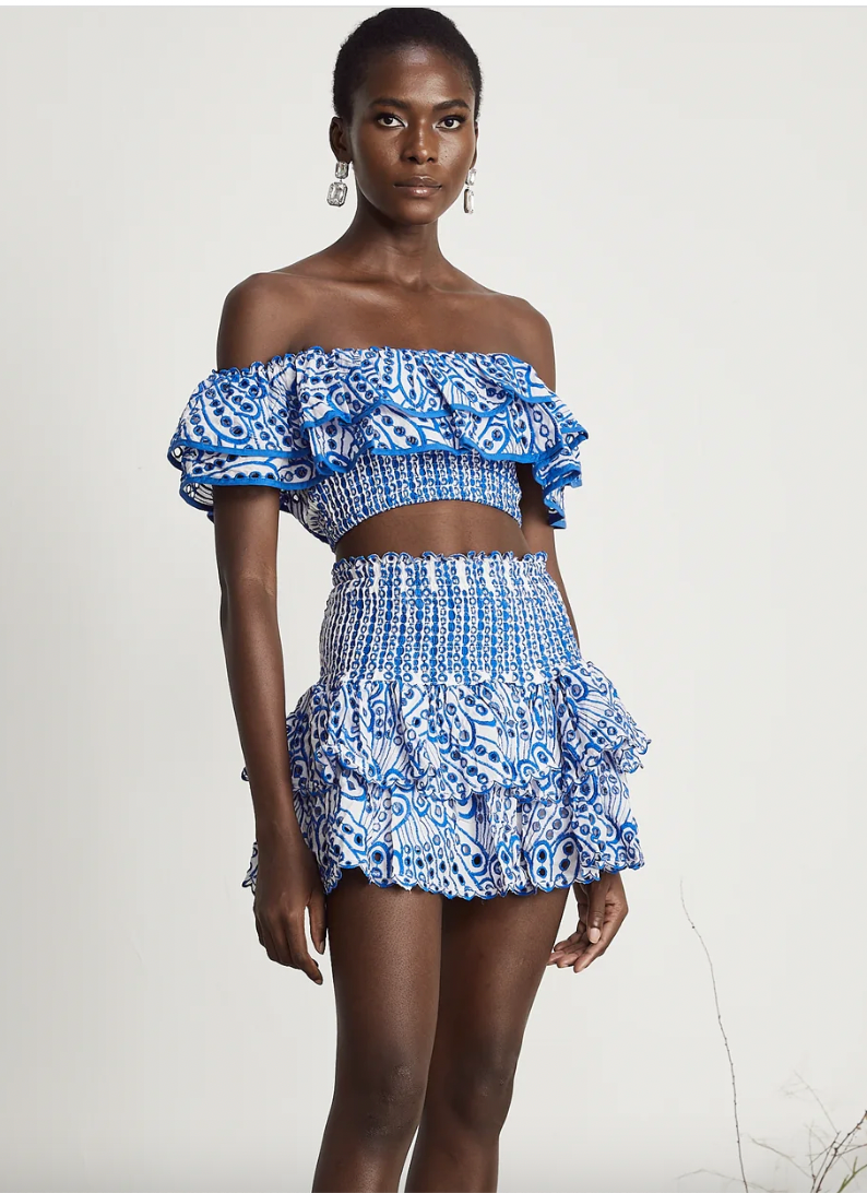 Miss Rosier ÉLODIE RUFFLED PATTERN-PRINT TOP & SKIRT MATCHING SET
