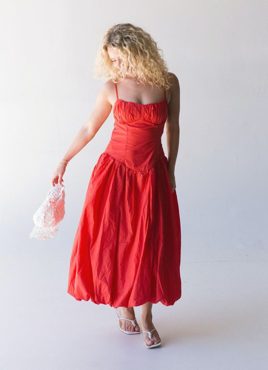 Red Midi Bubble Dress