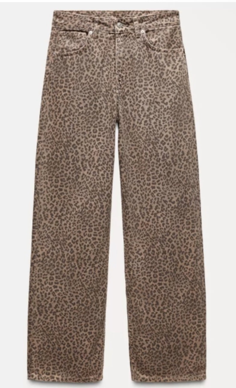 Zara Cheetah Print High Rise Wide Leg Jeans Size US 2