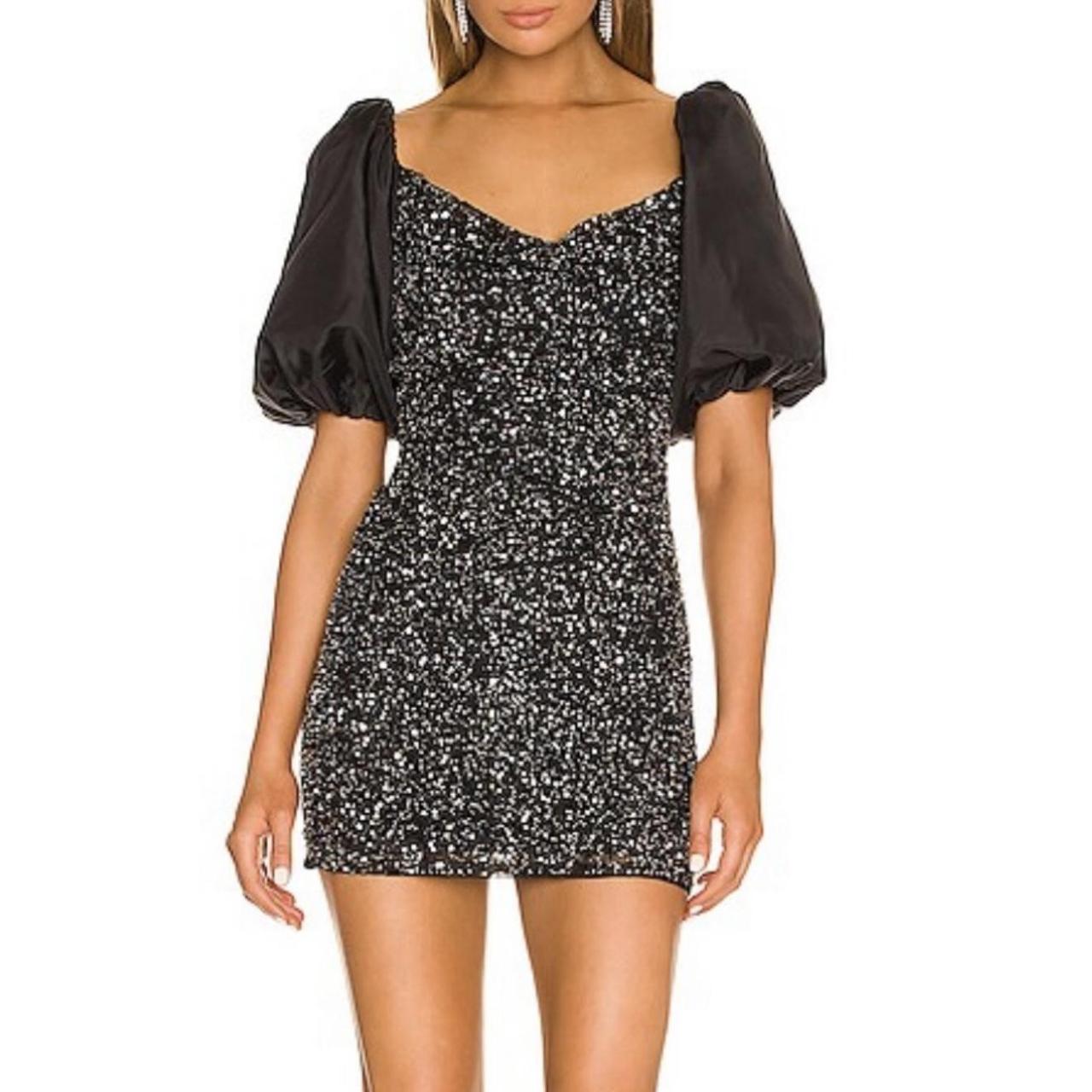 Tularosa Black Sequin Puff Sleeve Mini Dress