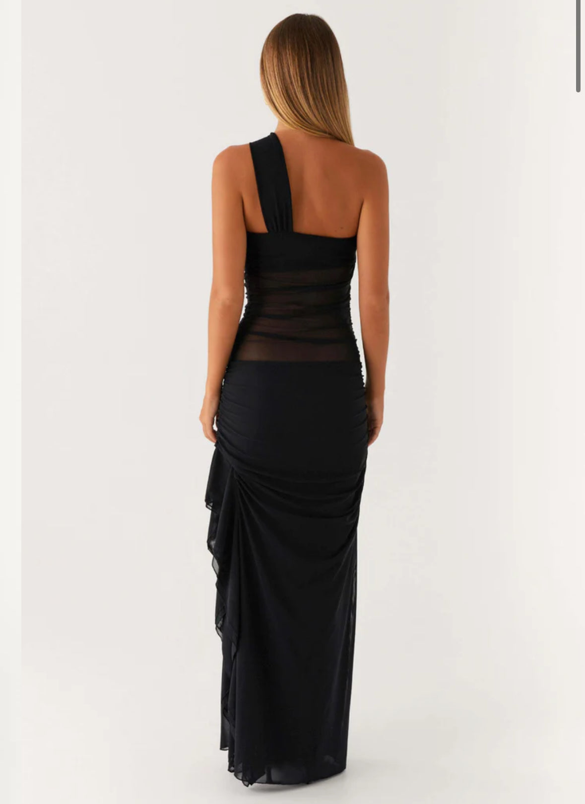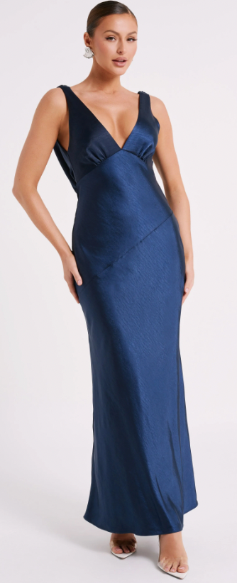 Navy Meshki Maxi Satin Dress With Back Cowl - Size M