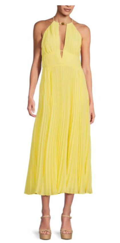 Simkhai Carli Plissé Halter Midi Dress